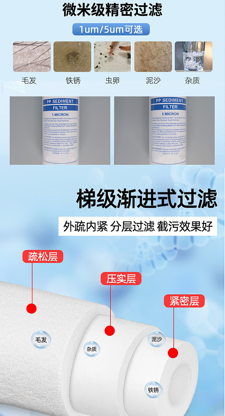 PP熔喷滤芯是采用食品级无毒无味的聚丙烯粒子,经过加热熔融、喷丝、牵引、接受成形而制成的管状滤芯。如果原料以聚丙烯为主。就可以称做PP熔喷滤芯。不仅在水净化大批量使用.还具有杰出的化学兼容性,适用于强酸、强碱及有机溶剂的过滤。纳污能力强,使用寿命长,成本低。